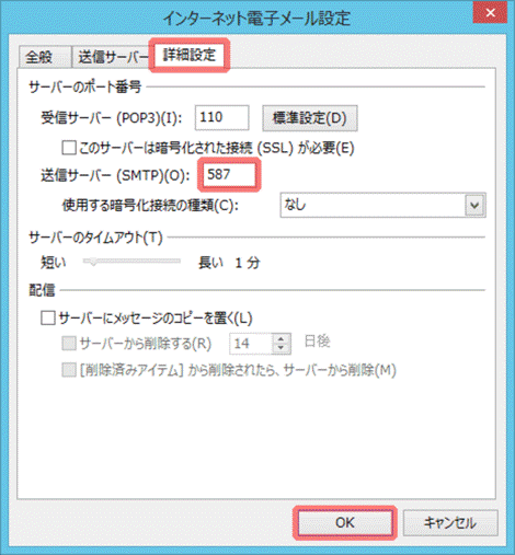 6. 「詳細設定」タブをクリックし、以下のように設定します。